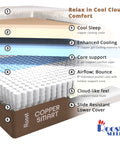 - Advanced Cooling Technology: The 14-inch Copper Smart Gel Memory Foam Mattress features a phase change cooling cover woven with copper-infused fibers. Copper, a naturally conductive element, enhances cooling by creating a super cool thermal conductor when compressed by your body weight, effectively drawing heat away and keeping you cool and comfortable throughout the night.